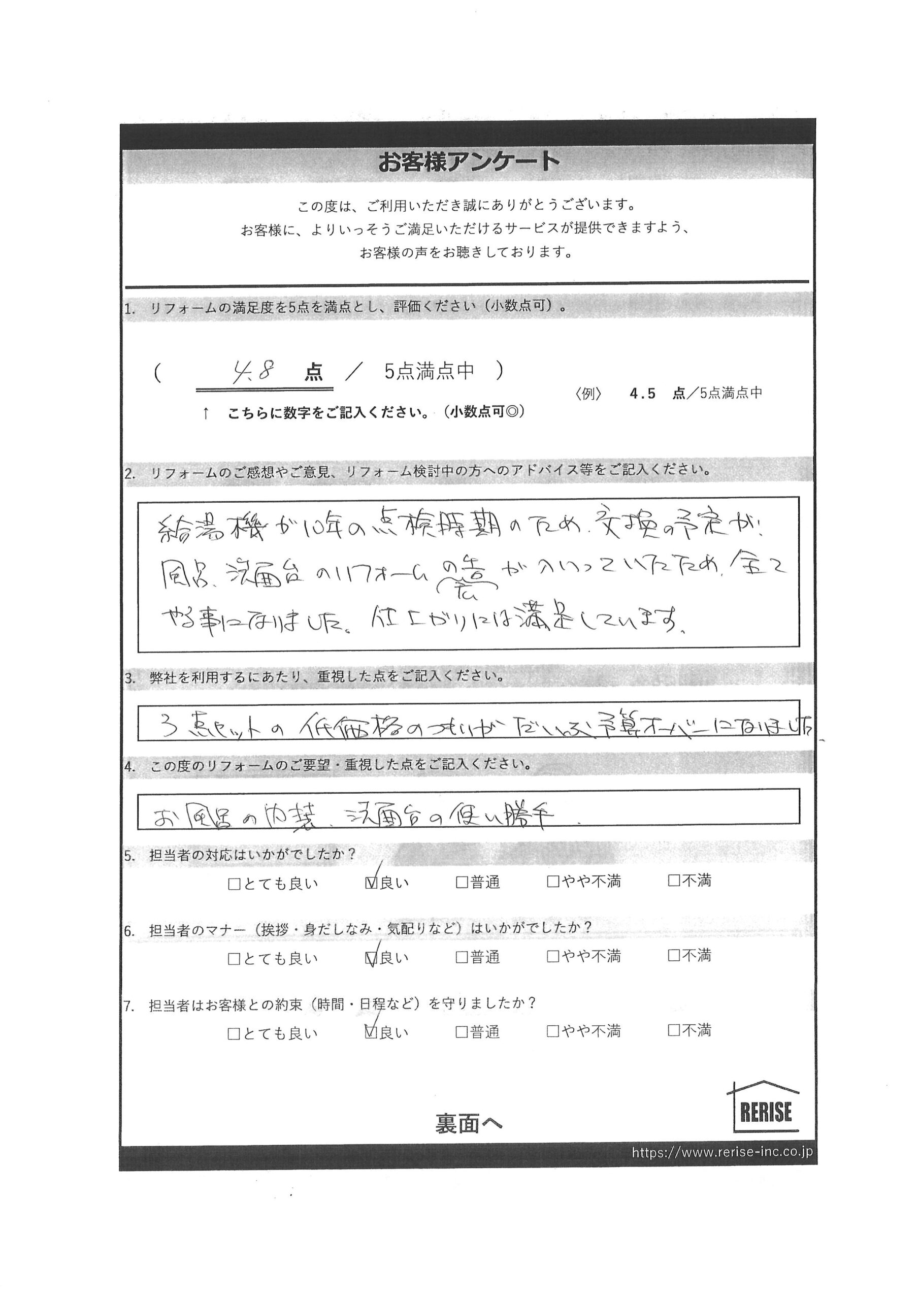 風呂・洗面台のリフォームの広告が入っていたため、全てやる事になりました。
