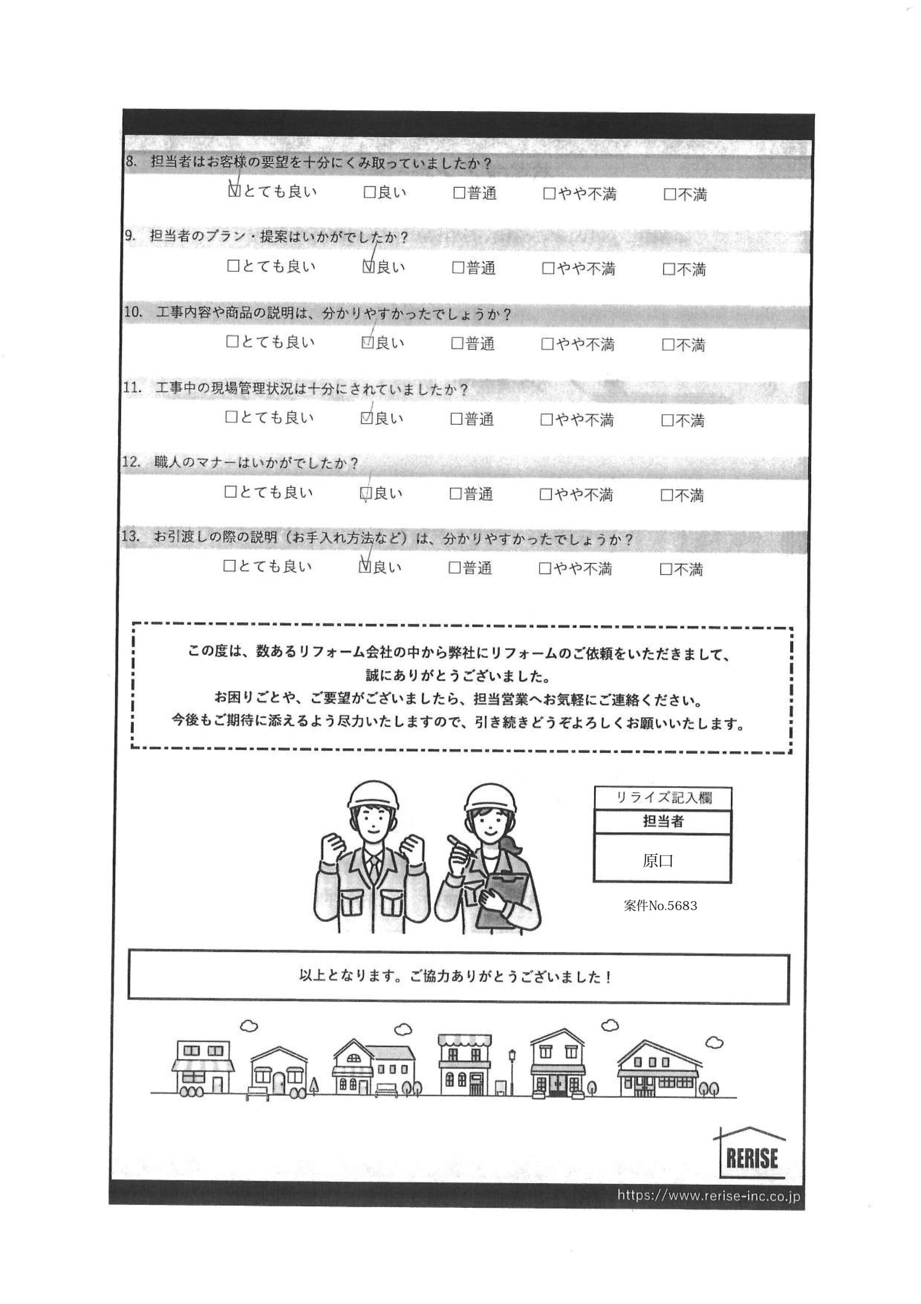 | とても良い | 良い | 普通 | やや不満 | 不満 |