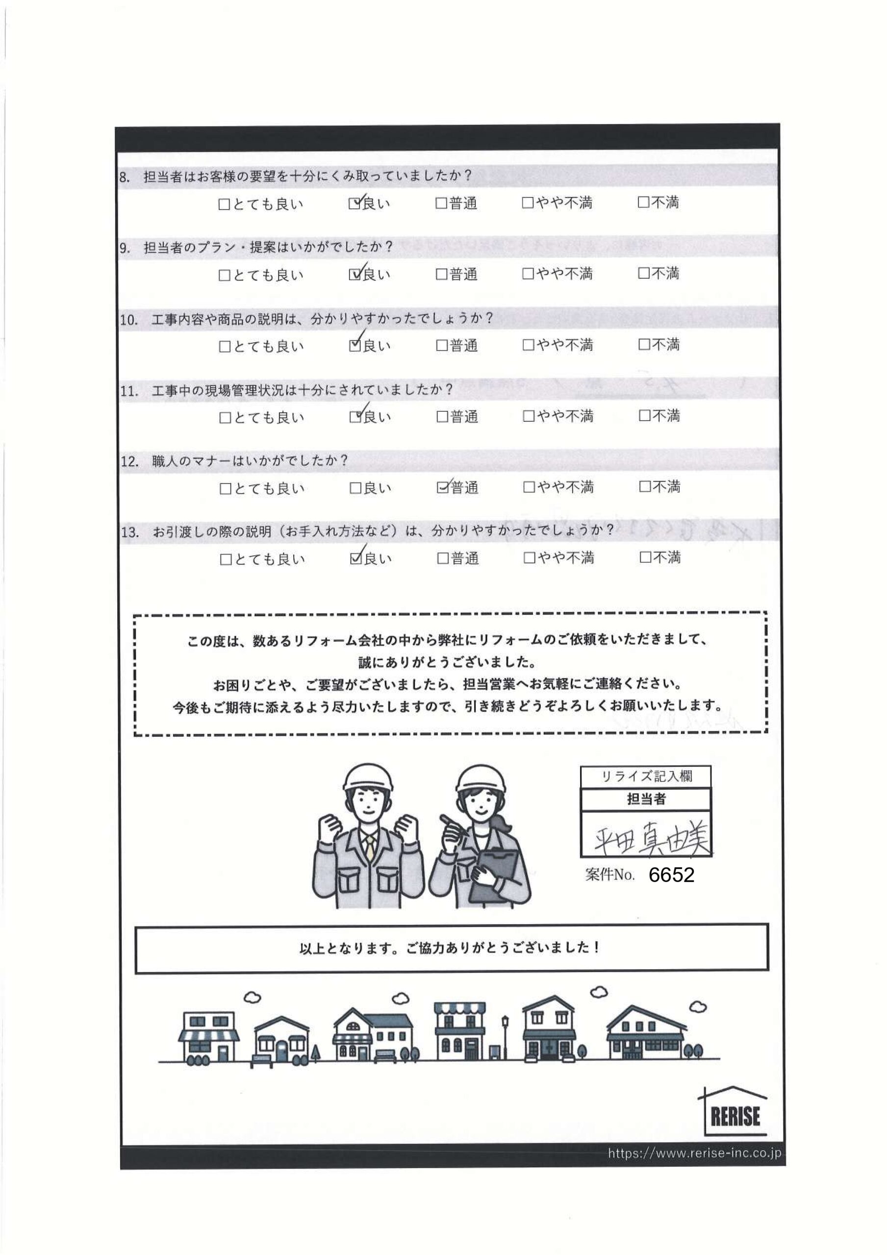 担当者のマナーはいかがでしたか?