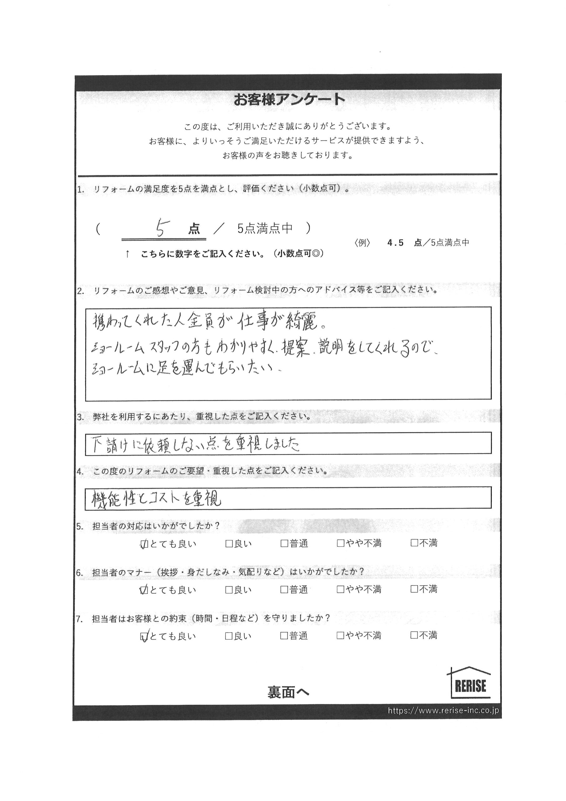 この度のリフォームのご要望・重視した点をご記入ください。