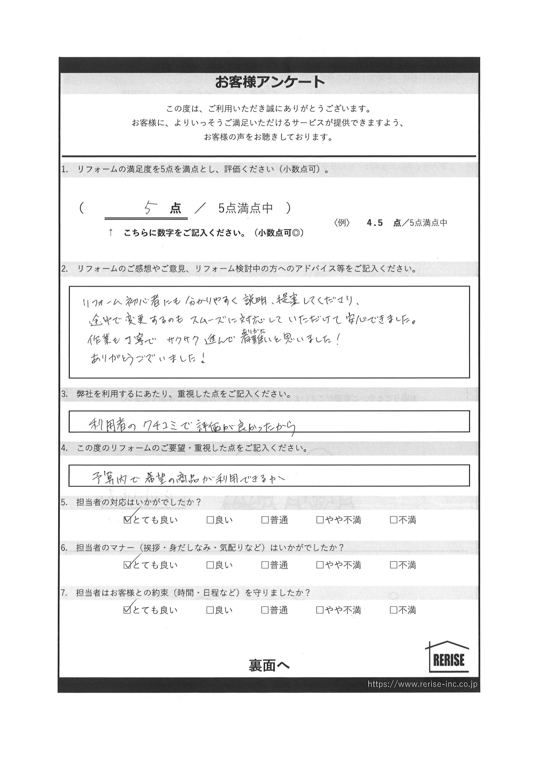 作業も丁寧でサクサク進んで有難いと思いました!