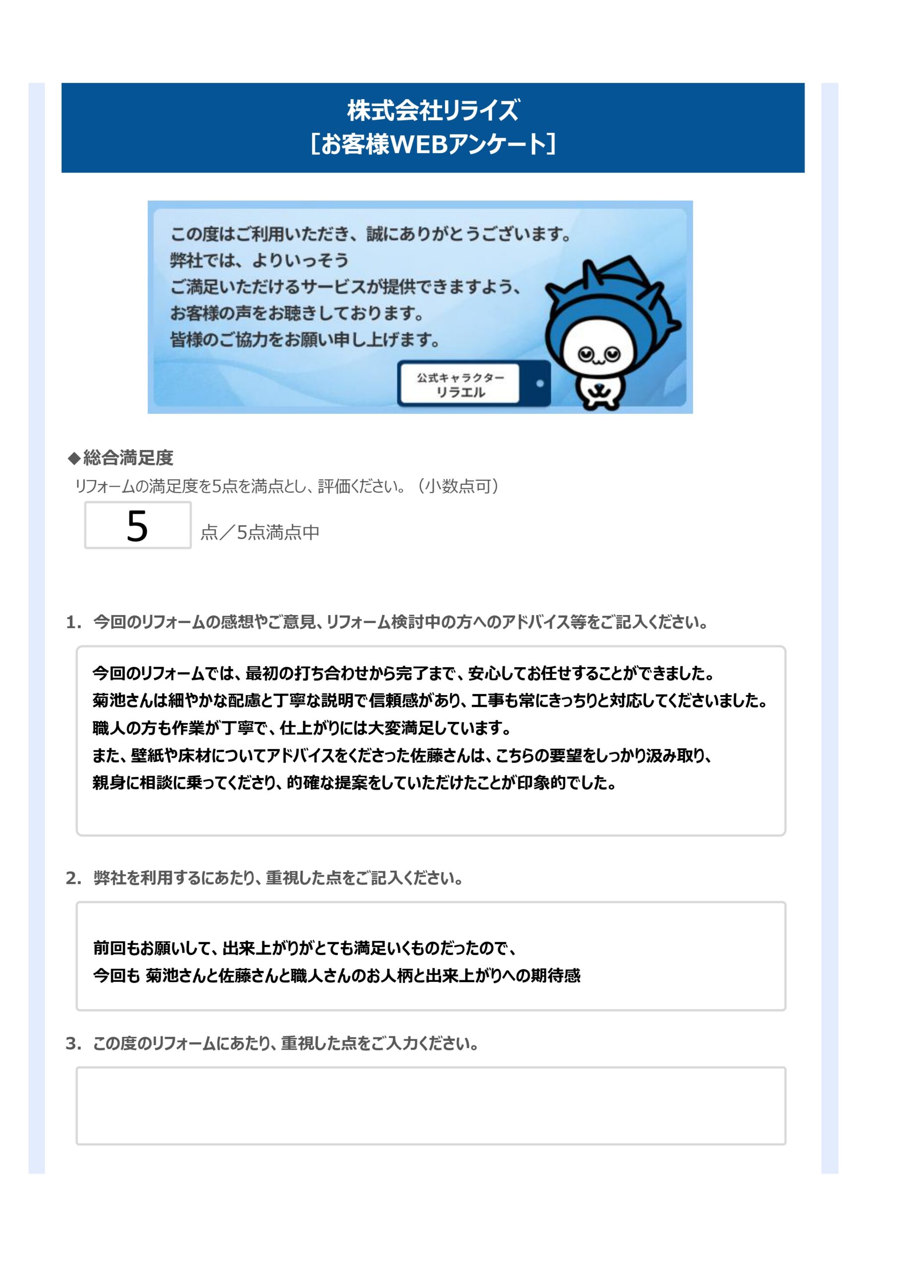 ご感想やご意見、リフォーム検討中の方へのアドバイス等をご記入ください。