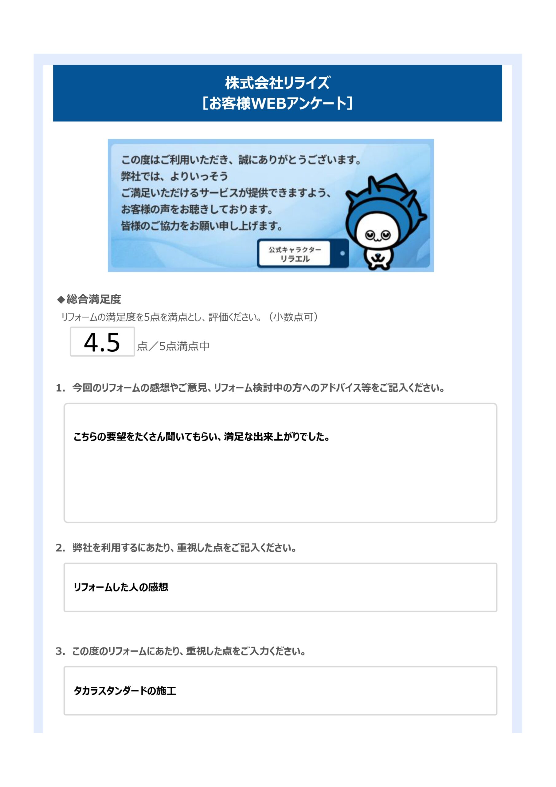 この度のリフォームのご要望・重視した点をご記入ください。