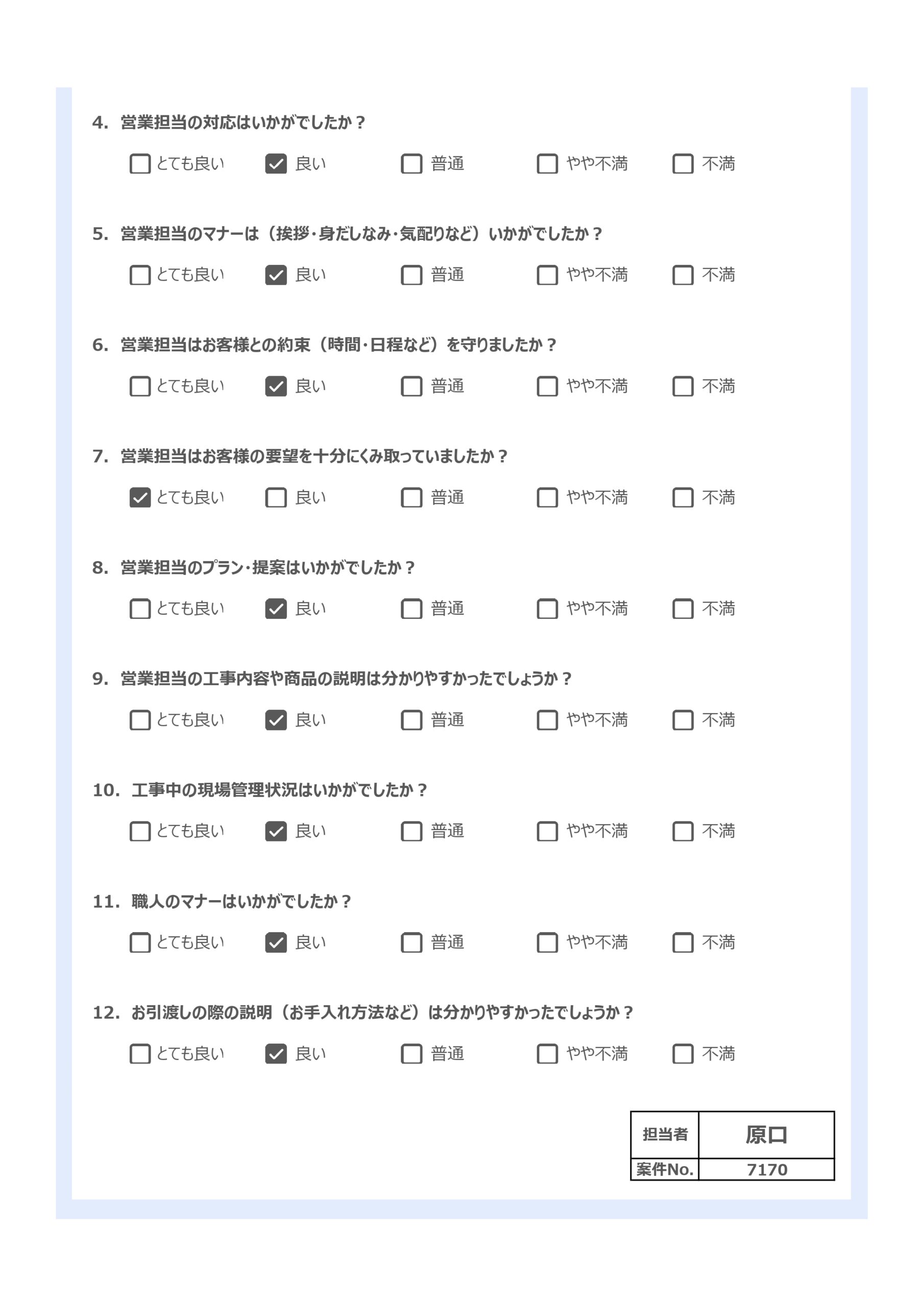 担当者のマナーはいかがでしたか?