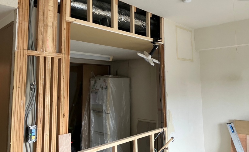 | キッチンカウンター | ※DAIKEN製 集成材[ネオホワイト] ※吊り戸背面壁解体・カウンター造作 ・電源増設 ・スイッチ・電源移設 |