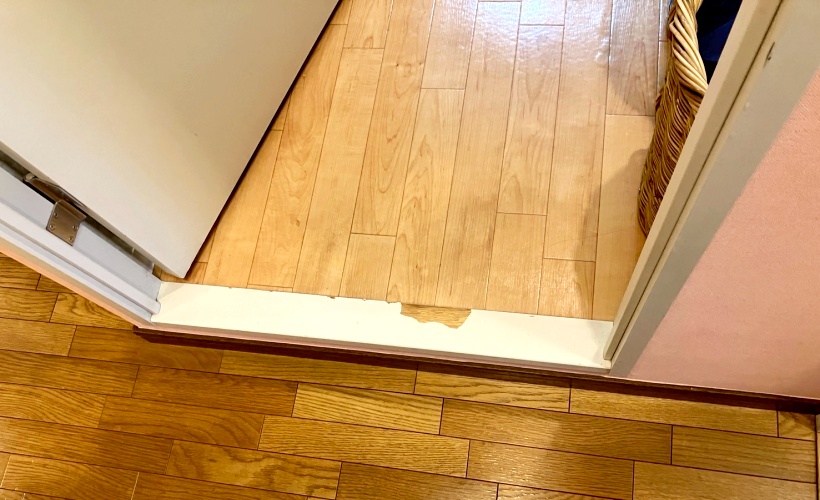 | リビング | ・ドアストッパー交換/DAIKEN ・ドア枠シート貼り/ 3M(ダイノックシート)[PSー004AR] ・戸当たり補修 |